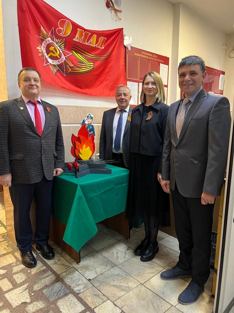 5 мая 2025 года в преддверии знаменательной для всей страны даты председатель Красноярского краевого суда Николай Викторович Фуга и председатель Совета судей Красноярского края Виктор Борисович Федоренко посетили экспозиции, установленные в Центральном, Свердловском районных судах г. Красноярска и Управлении Судебного департамента в Красноярском крае. Совместно с председателями судов Николай Викторович и Виктор Борисович почтили память об участниках Великой Отечественной войны и тружениках тыла, родственниках работников судов и Управления Судебного департамента в Красноярском крае минутой молчания и возложили к экспозициям цветы.