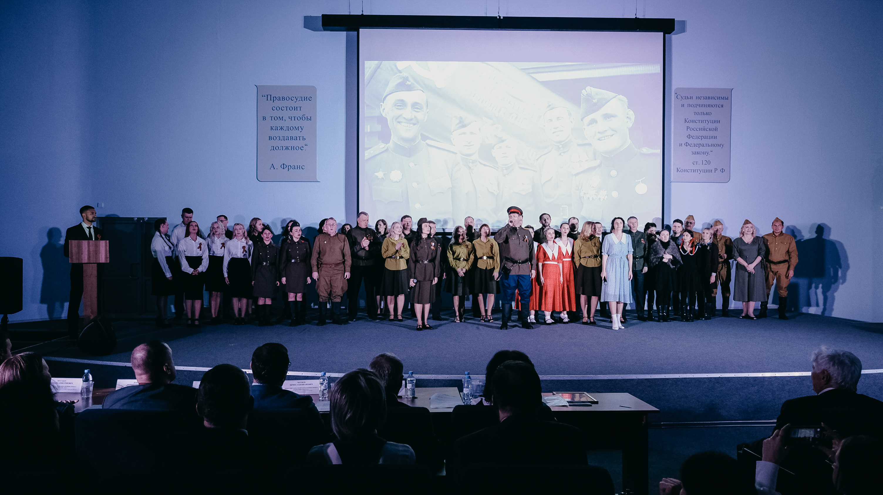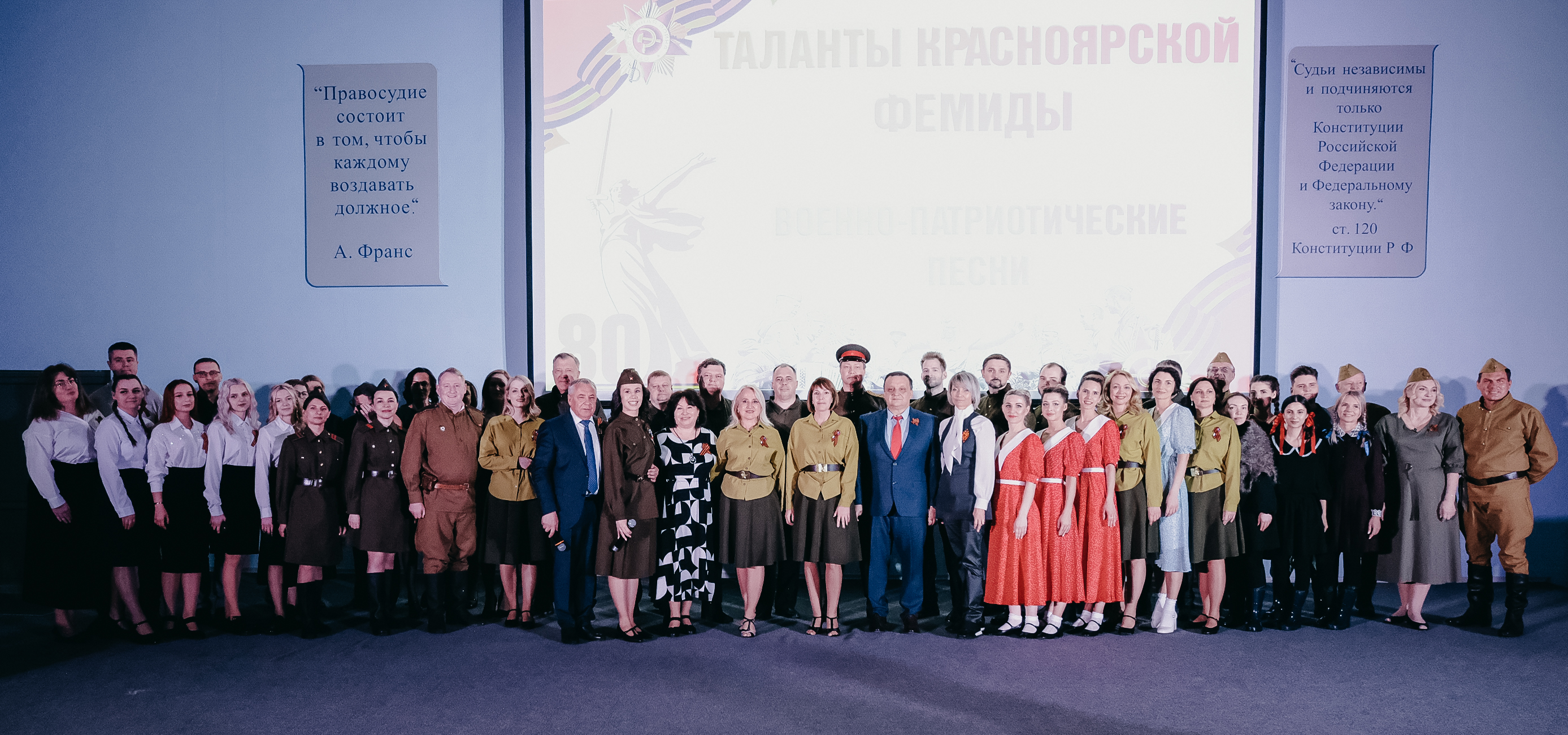 30 апреля 2025 года в Красноярском краевом суде состоялся уже ставший традиционным ежегодный творческий конкурс «Таланты Красноярской Фемиды», организованный Красноярским региональным отделением ООО «Российское объединение судей» и приуроченный к празднованию 80-летия Победы советского народа в Великой Отечественной войне 1941-1945 годов и Году защитника Отчества, в связи с чем в этом году главная тема конкурса - военно-патриотические песни. Мероприятие началось со слов благодарности великому подвигу нашего народа и минуты молчания в память о погибших в той страшной войне против фашизма. После минуты молчания состоялось вручение печатного издания «Книга памяти. Во имя победы», в которой собраны уникальные материалы о судьях и работниках судебной системы Красноярского края, участниках военных действий и тружениках тыла Великой Отечественной войны 1941-1945 годов, почетным гостям мероприятия - родственникам ветеранов Великой Отечественной войны и детям войны судейского сообщества Красноярского края: - Хлебникову Роману Демидовичу, председателю Красноярского краевого суда в отставке – ребенку войны; - Афанасьеву Андрею Борисовичу, председателю уголовной коллегии Красноярского краевого суда - внуку Вершинина Бориса Николаевича, в годы войны - народного заседателя Ленинского районного народного суда г. Красноярска; - Лыкиной Валентине Алексеевне, дочери Лыкина Алексея Алексеевича, участника Великой Отечественной войны, начальника отдела юстиции Крайисполкома; - Андреевой Тамаре Дмитриевне, председателю Сосновоборского городского суда в отставке.