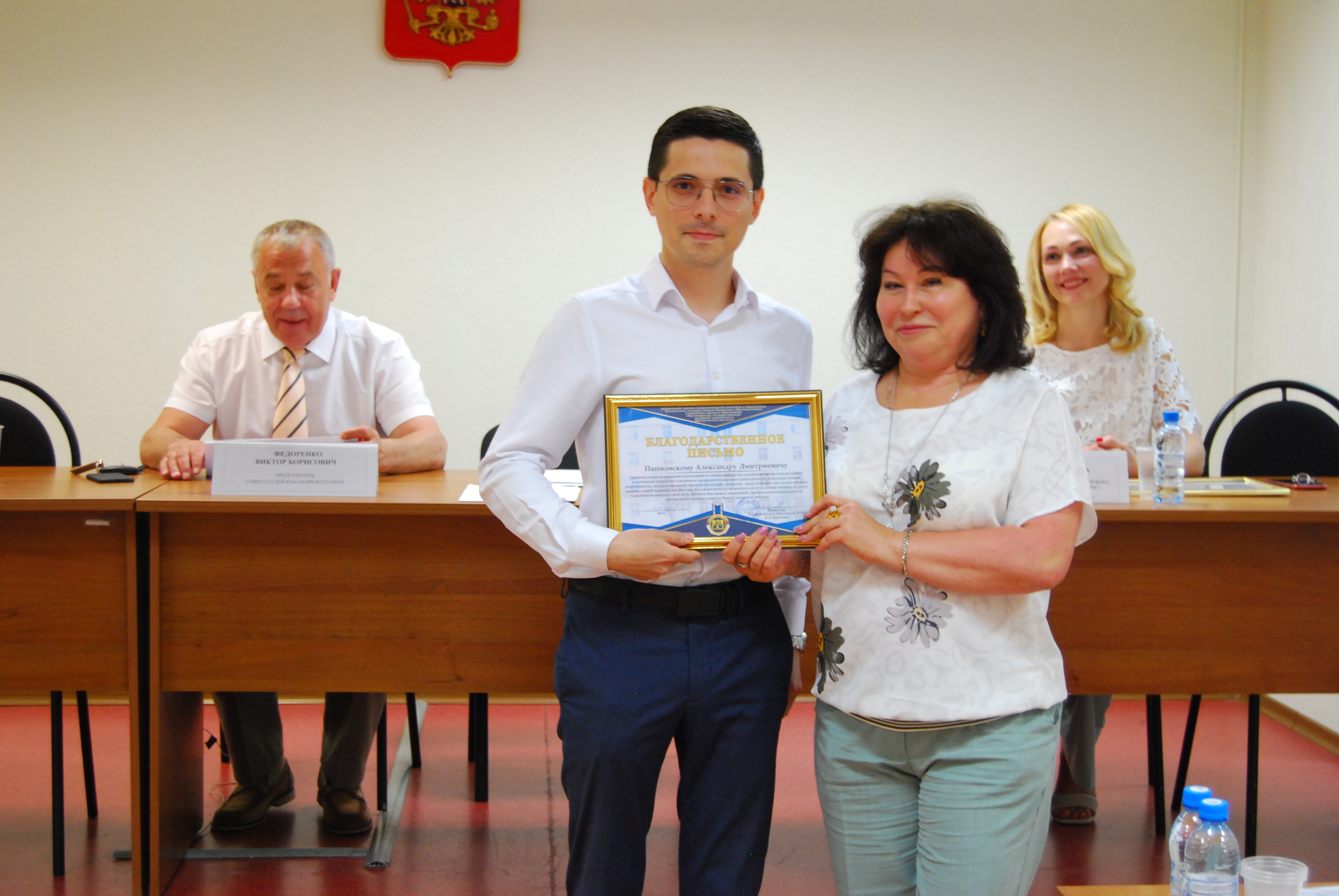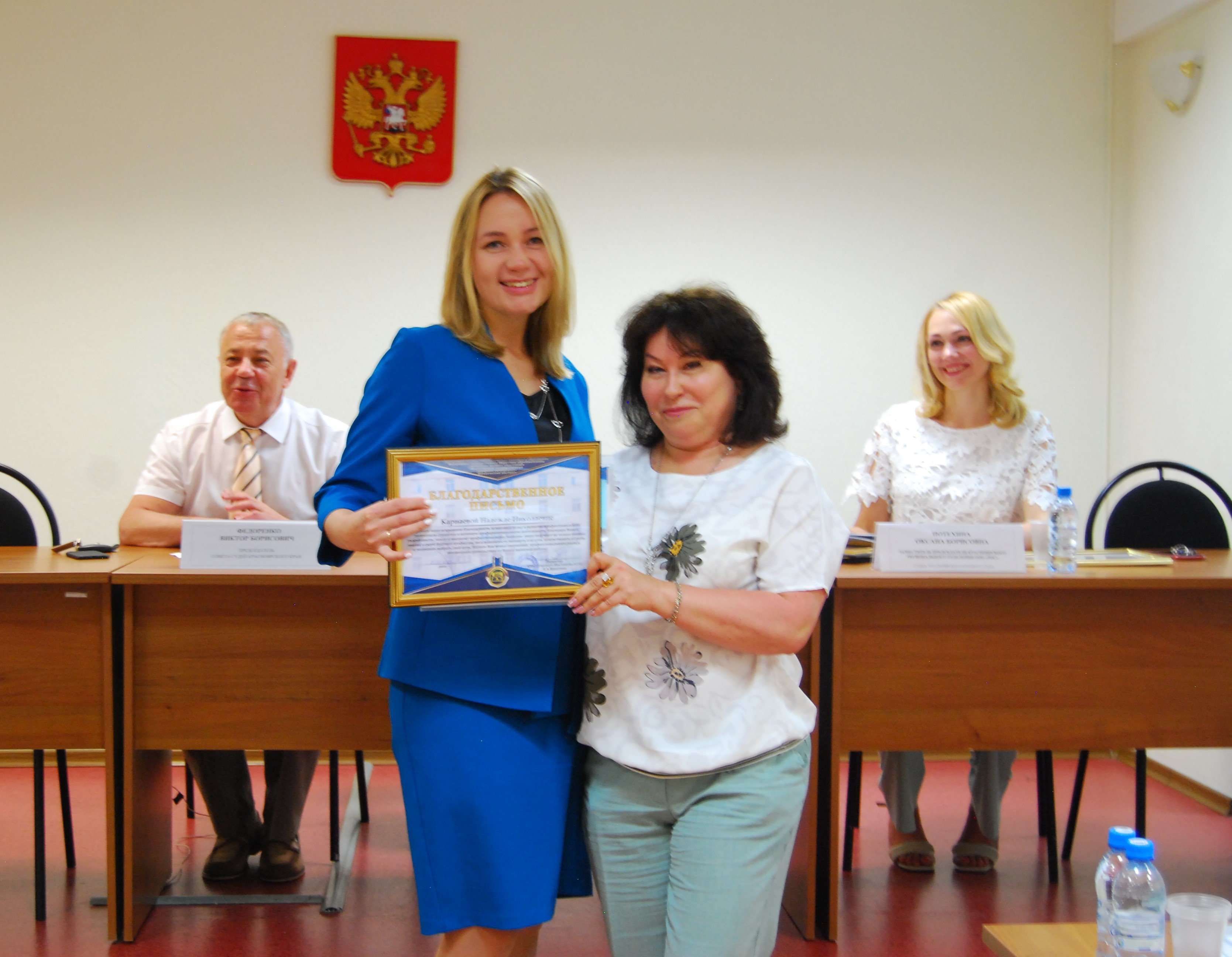 С.В. Ахметова с Благодарственным письмом С.В. Ахметова вручает Благодарственное письмо Юридического института ФГБОУ ВО «Красноярский ГАУ» судье Ленинского районного суда г. Красноярска А.Д. Пашковскому