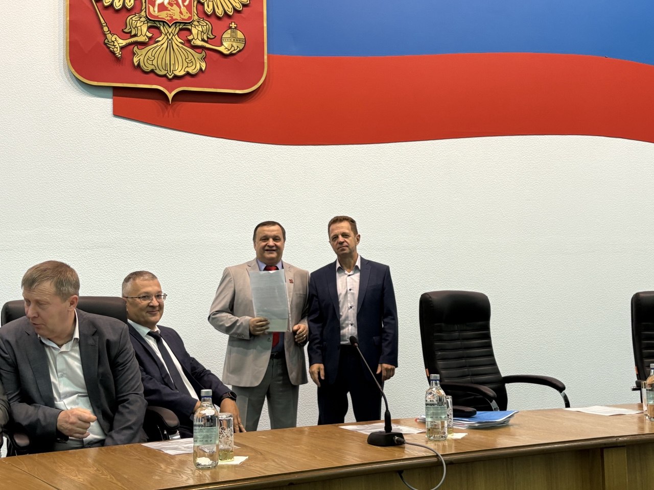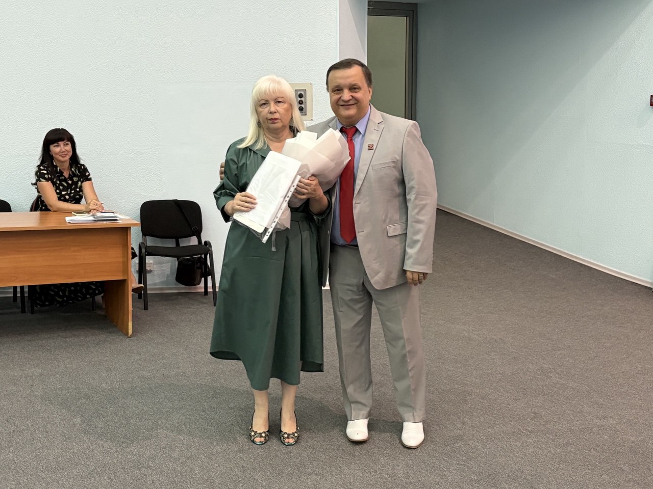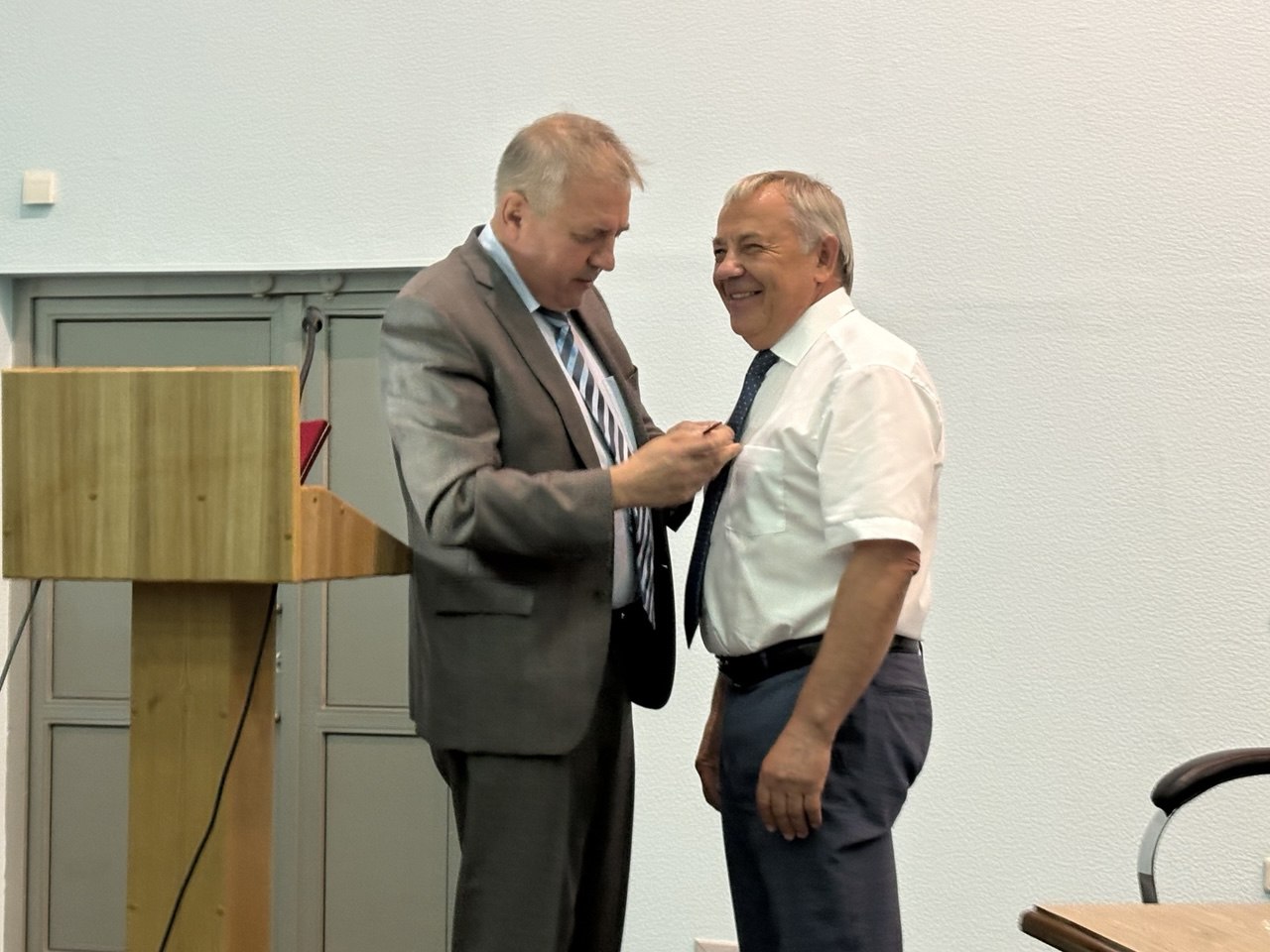 Главный федеральный инспектор по Красноярскому краю аппарата полномочного представителя Президента Российской Федерации в Сибирском федеральном округе С.Н. Блинов прибыл на совещание, чтобы вручить председателю Совета судей Красноярского края В.Б. Федоренко государственную награду Российской федерации – медаль ордена «За заслуги перед Отечеством» II степени за заслуги в укреплении законности, защите прав и интересов граждан, многолетнюю добросовестную работу.