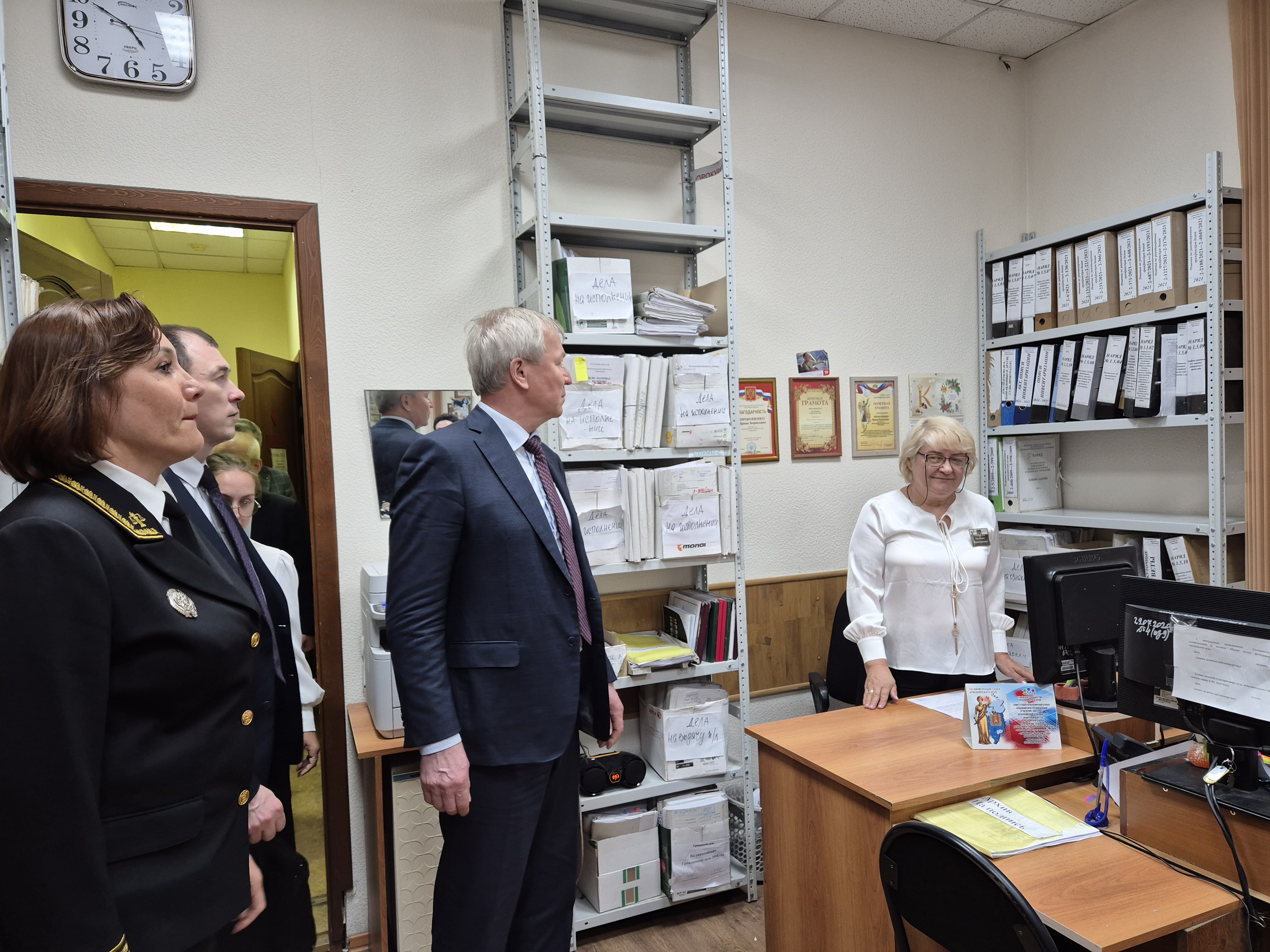 В ходе рабочей поездки Генеральный директор Судебного департамента при Верховном Суде РФ В.А. Иванов, заместитель Генерального директора Судебного департамента при Верховном Суде РФ А. Т. Ибрагимов, и.о. начальника Главного управления организационно-правового обеспечения деятельности судов Судебного департамента при Верховном Суде РФ Ю.С. Егоров, начальник Управления Судебного департамента в Красноярском крае А.В. Букарин посетили Красноярский краевой суд, Третий арбитражный апелляционный суд, Арбитражный суд Красноярского края и ряд районных судов. В.А. Иванов осмотрел залы судебных заседаний, кабинеты судей и сотрудников аппарата, архивные и серверные помещения, а также ознакомился с работой отделов обеспечения судопроизводства.