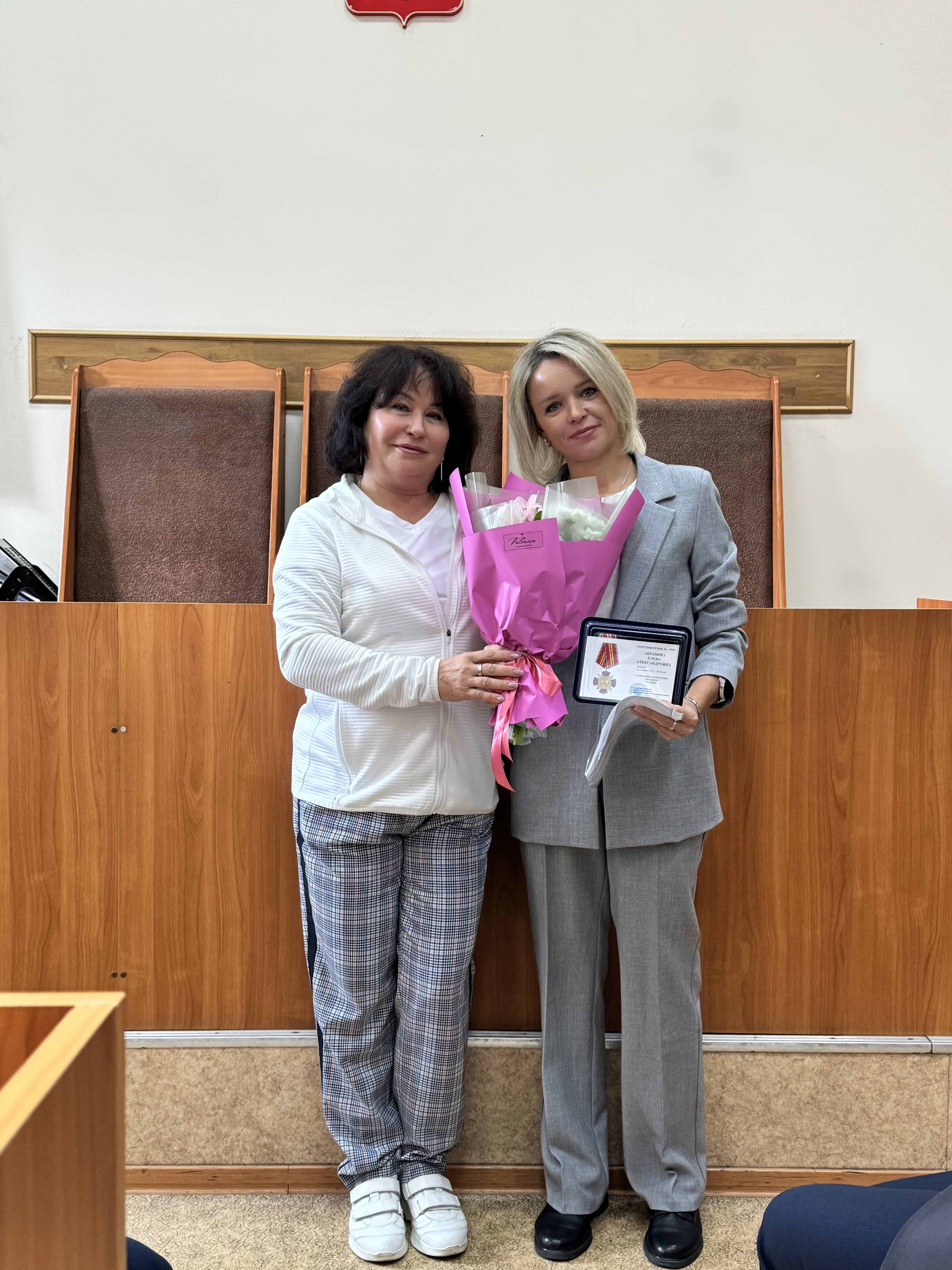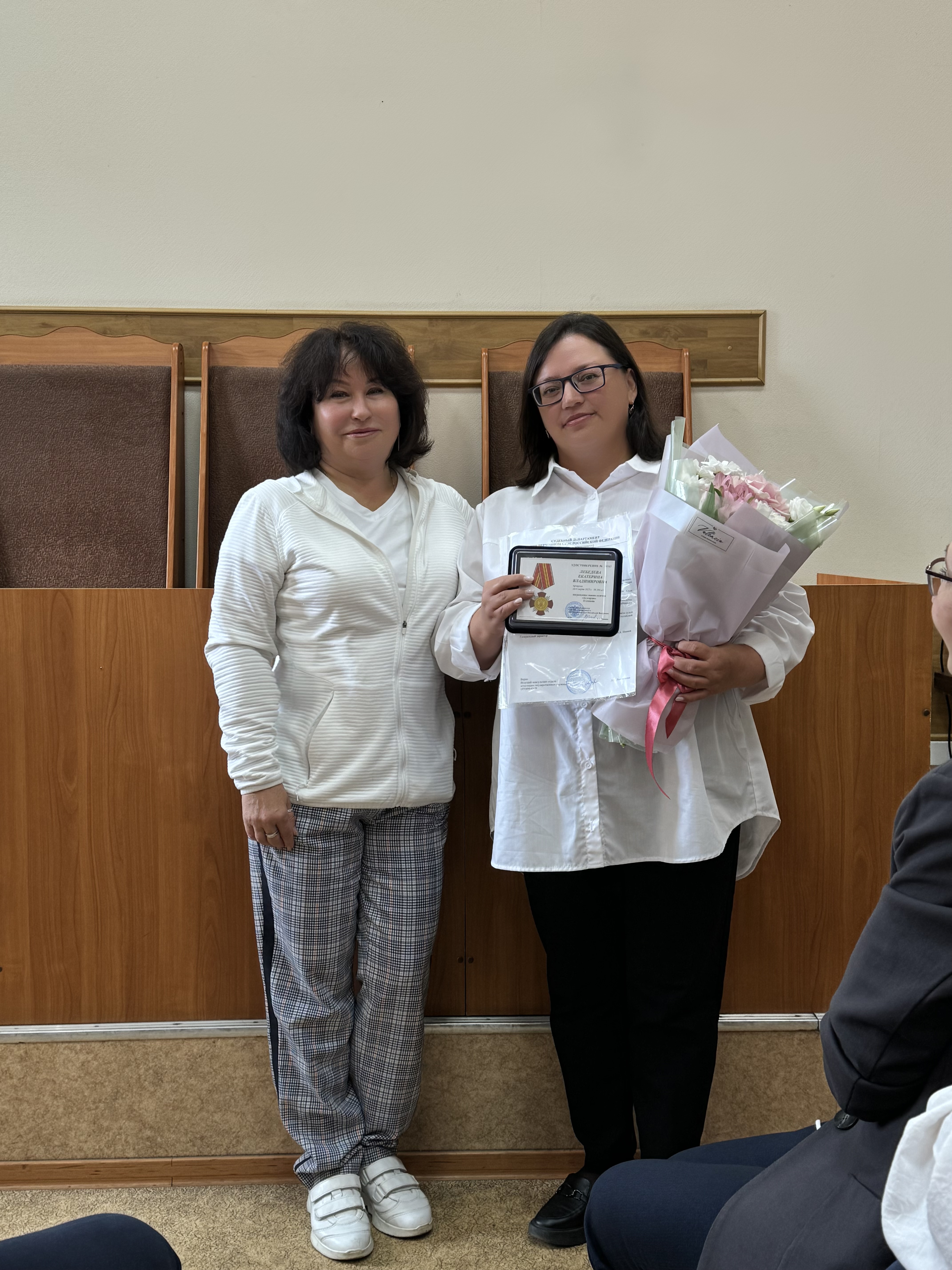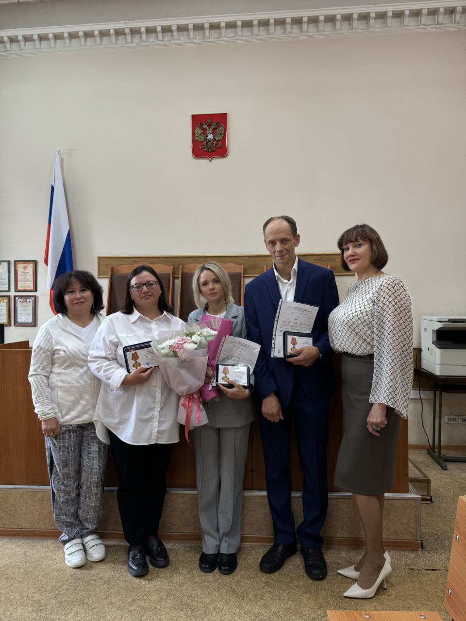 11 августа 2025 года в торжественной обстановке на собрании судей и работников суда заместитель начальника Управления Судебного департамента в Красноярском крае Светлана Васильевна Ахметова наградила государственных гражданских служащих Железнодорожного районного суда г. Красноярска знаком отличия Судебного департамента при Верховном Суде Российской Федерации «За усердие» II степени: - Гусева Дмитрия Александровича, ведущего специалиста суда; - Лебедеву Екатерину Владимировну, начальника отдела судопроизводства по гражданским делам; - Абрамову Елену Александровну, помощника председателя суда.