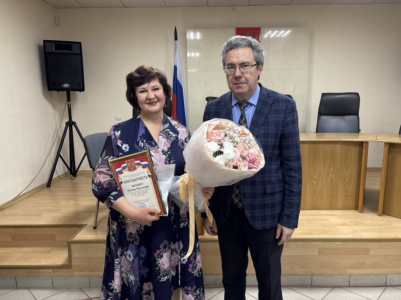28 октября 2025 года коллектив Управления Судебного департамента в Красноярском крае (далее – Управление) поздравил с юбилеем консультанта отдела капитального ремонта, материально-технического снабжения и управления недвижимостью Управления Наталью Васильевну Зиневич. На службу в органы судебной системы Н.В. Зиневич поступила в 2019 году на должность консультанта отдела капитального ремонта, материально-технического снабжения и управления недвижимостью Управления, которую с уверенностью занимает по сегодняшний день. За время работы она зарекомендовала себя грамотным, ответственным и высококвалифицированным специалистом, способным оперативно решать поставленные задачи. Начальник Управления Александр Викторович Букарин вручил Наталье Васильевне Благодарность Управления Судебного департамента в Красноярском крае за добросовестный труд, поздравил с красивой датой, пожелал здоровья, благополучия и дальнейших профессиональных успехов! ![]() |