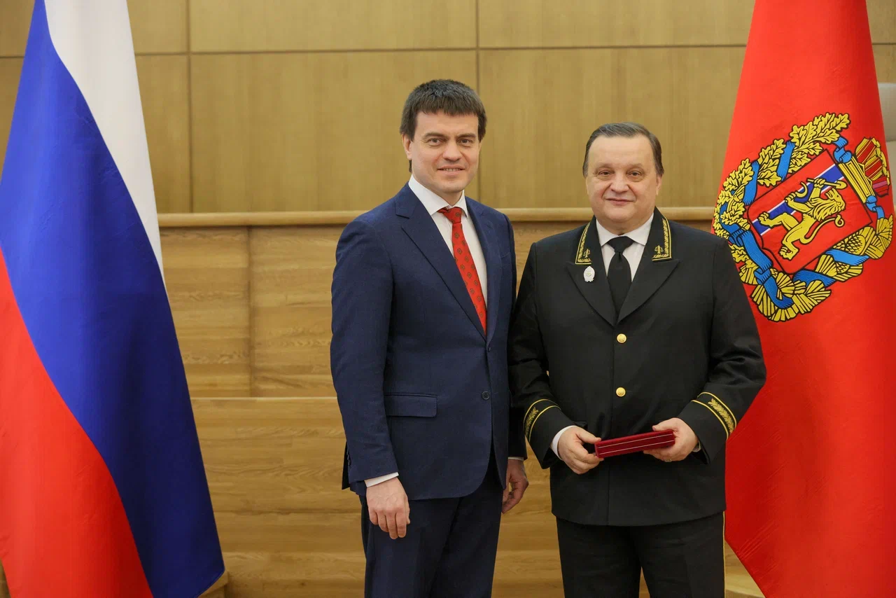 6 декабря 2025 года в Администрации Губернатора Красноярского края состоялось торжественное вручение государственных и краевых наград, в рамках которого Губернатор Красноярского края М.М. Котюков вручил нагрудный знак и удостоверение в связи с присвоением почетного звания «Заслуженный юрист Красноярского края» за заслуги в укреплении законности и правопорядка председателю Красноярского краевого суда Н.В. Фуге. Николай Викторович имеет стаж работы по юридической специальности более 40 лет. С октября 1992 по 2001 год работал судьей, председателем Краснотуранского районного суда Красноярского края, с 2001 по 2014 год – судьей судебной коллегии по гражданским делам, заместителем председателя Красноярского краевого суда, председателем квалификационной коллегии судей Красноярского края. С 2014 года до настоящего времени возглавляет Красноярский краевой суд. Имеет первый квалификационный класс. Представление к присвоению почетного звания нашему коллеге по судейскому корпусу инициировано Красноярским региональным отделением ООО «Российское объединение судей» и председателем Совета судей Красноярского края. Поздравляем Николая Викторовича с получением награды, желаем благополучия, крепкого здоровья и новых достижений в служении правосудию! |