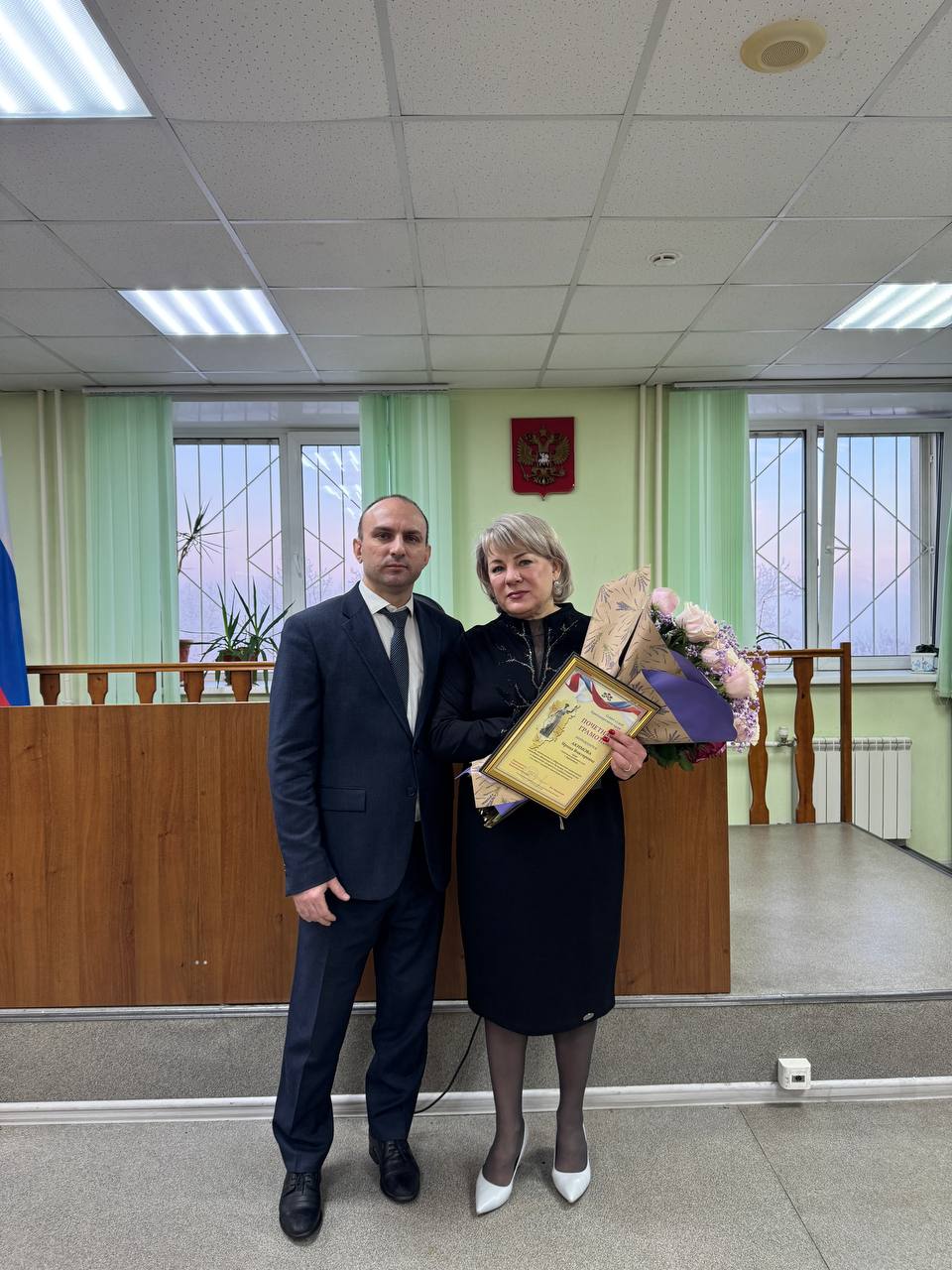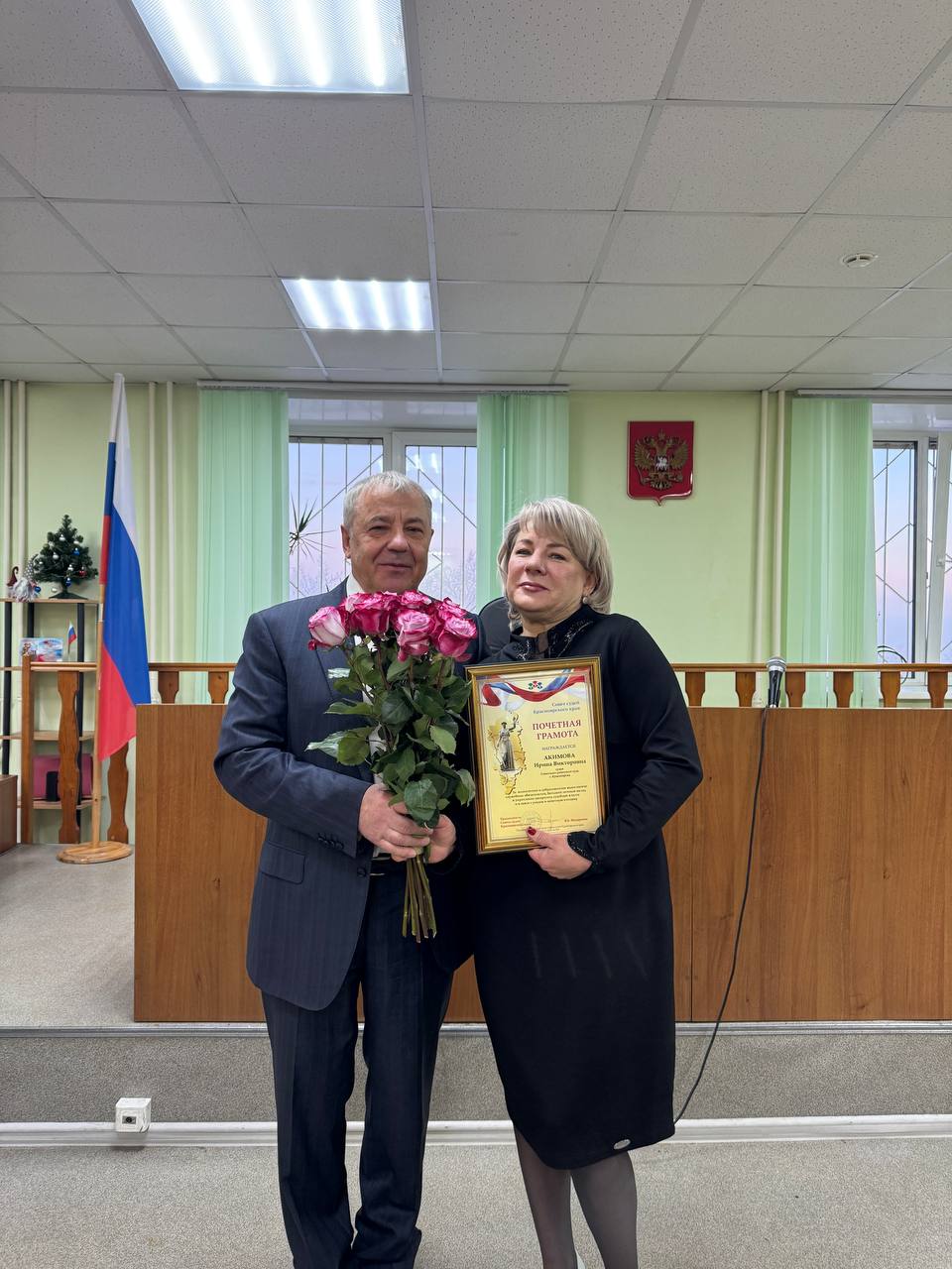 30 декабря 2025 года в Советском районном суде г. Красноярска состоялось торжественное мероприятие, посвященное уходу в почетную отставку судьи Ирины Викторовны Акимовой. Свою трудовую деятельность в судебной системе Ирина Викторовна начала с 1988 года в Советском районном суде г. Красноярска. Постановлением Законодательного Собрания Красноярского края от 18.05.2001 И.В. Акимова назначена на должность мирового судьи судебного участка № 78 в Советском районе г. Красноярска. Указом Президента РФ № 274 от 28.02.2004 назначена на должность судьи Советского районного суда г. Красноярска на трехлетний срок полномочий, Указом президента РФ № 1022 от 06.08.2007 назначена на должность судьи Советского районного суда г. Красноярска без ограничения срока полномочий. Стаж работы по юридической специальности составляет 37 лет, стаж работы в должности судьи 24 года. Председатель суда А.В. Сидоренко поблагодарил Ирину Викторовну за добросовестную многолетнюю работу и пожелал крепкого здоровья, много радостных и спокойных дней, семейного уюта и исполнения самых заветных желаний. В знак признания заслуг и выдающегося вклада в развитие правосудия, председатель Совета судей В.Б. Федоренко вручил Ирине Викторовне Почетную грамоту Совета судей Красноярского края. Коллектив суда желает Ирине Викторовне крепкого здоровья, благополучия и множество счастливых моментов в новой жизненной главе! |
