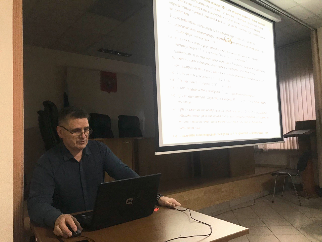 Евгений Александрович рассказал государственным гражданским служащим об определениях понятий «путь эвакуации» и «эвакуационные выходы», требованиях пожарной безопасности к ним, а также об эвакуационных путях и выходах, организованных в Управлении Судебного департамента в Красноярском крае. Тема доклада вызвала активное обсуждение среди присутствующих.