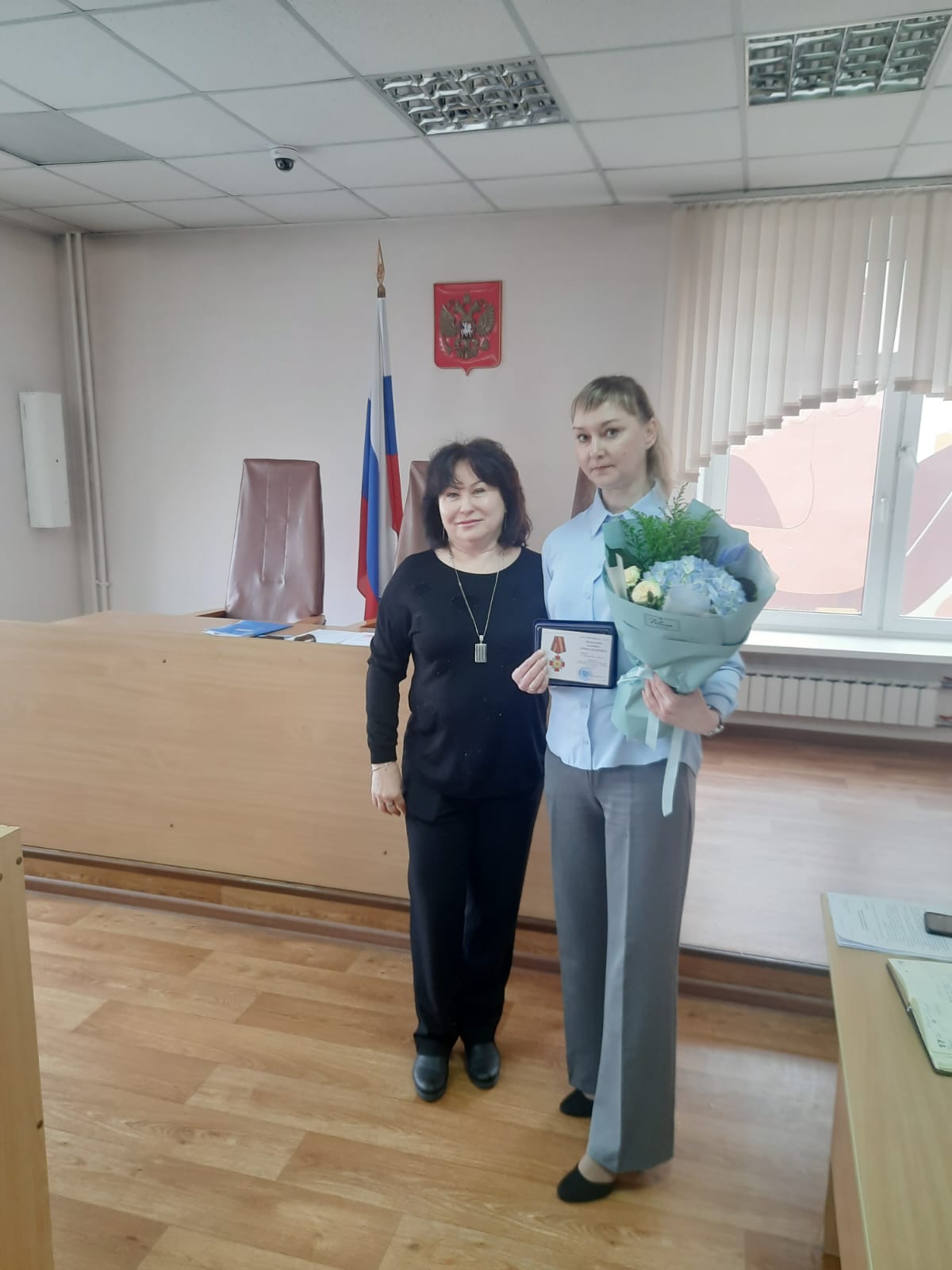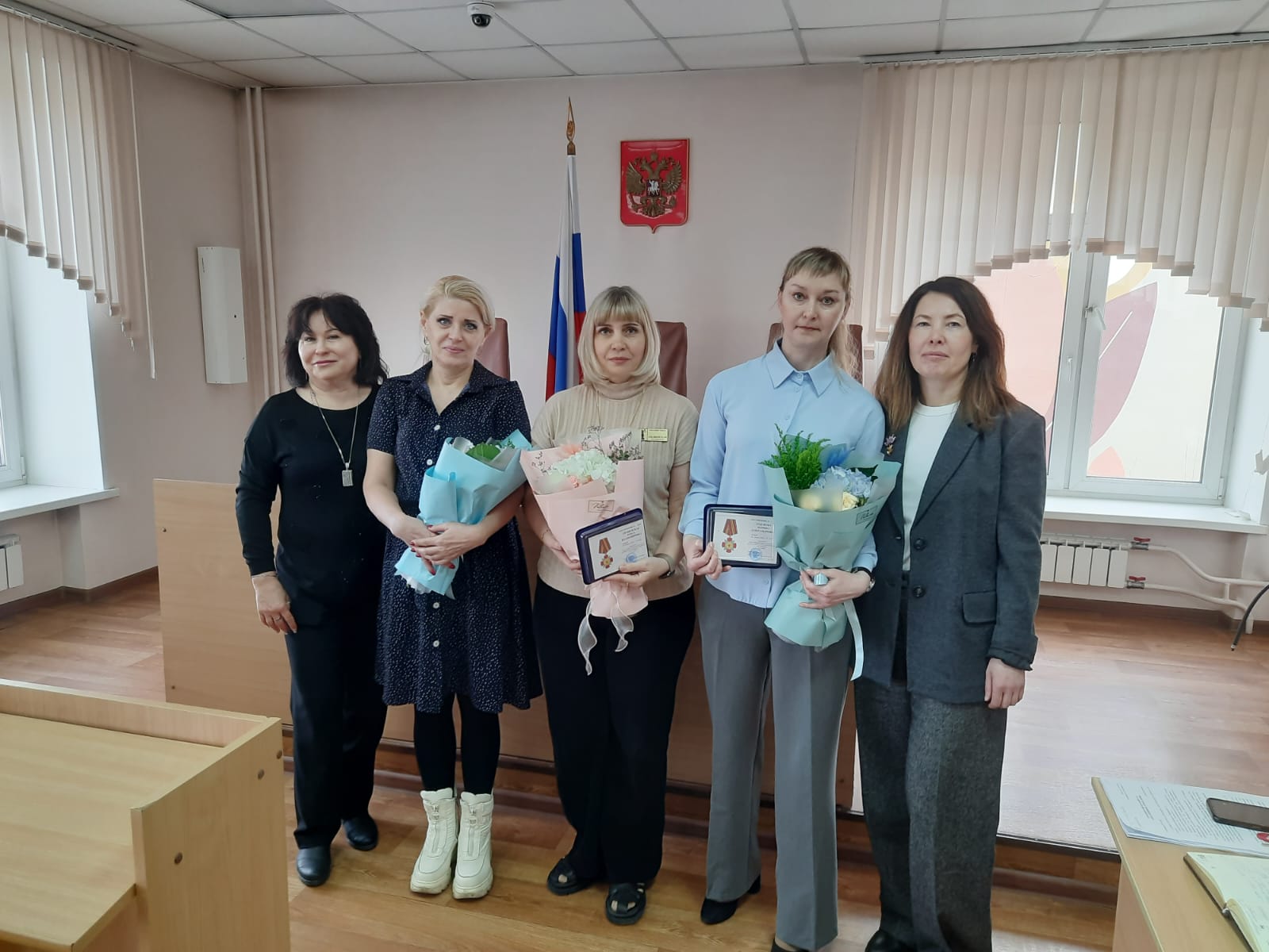 14 марта 2025 года начальник Управления Судебного департамента в Красноярском крае Александр Викторович Букарин за значительный личный вклад и развитие судебной системы, всестороннее содействие в укреплении и совершенствовании правосудия в Российской Федерации наградил государственных гражданских служащих Ленинского районного суда г. Красноярска: - знаком отличия Судебного департамента при Верховном Суде Российской Федерации «За усердие» II степени: · Бугаеву Наталию Владимировну, секретаря суда отдела обеспечения судопроизводства по гражданским делам; · Михаленко Светлану Александровну, старшего специалиста 1 разряда. - медалью Судебного департамента при Верховном Суде Российской Федерации «За безупречную службу» Стерехову Марину Романовну, начальника отдела делопроизводства.