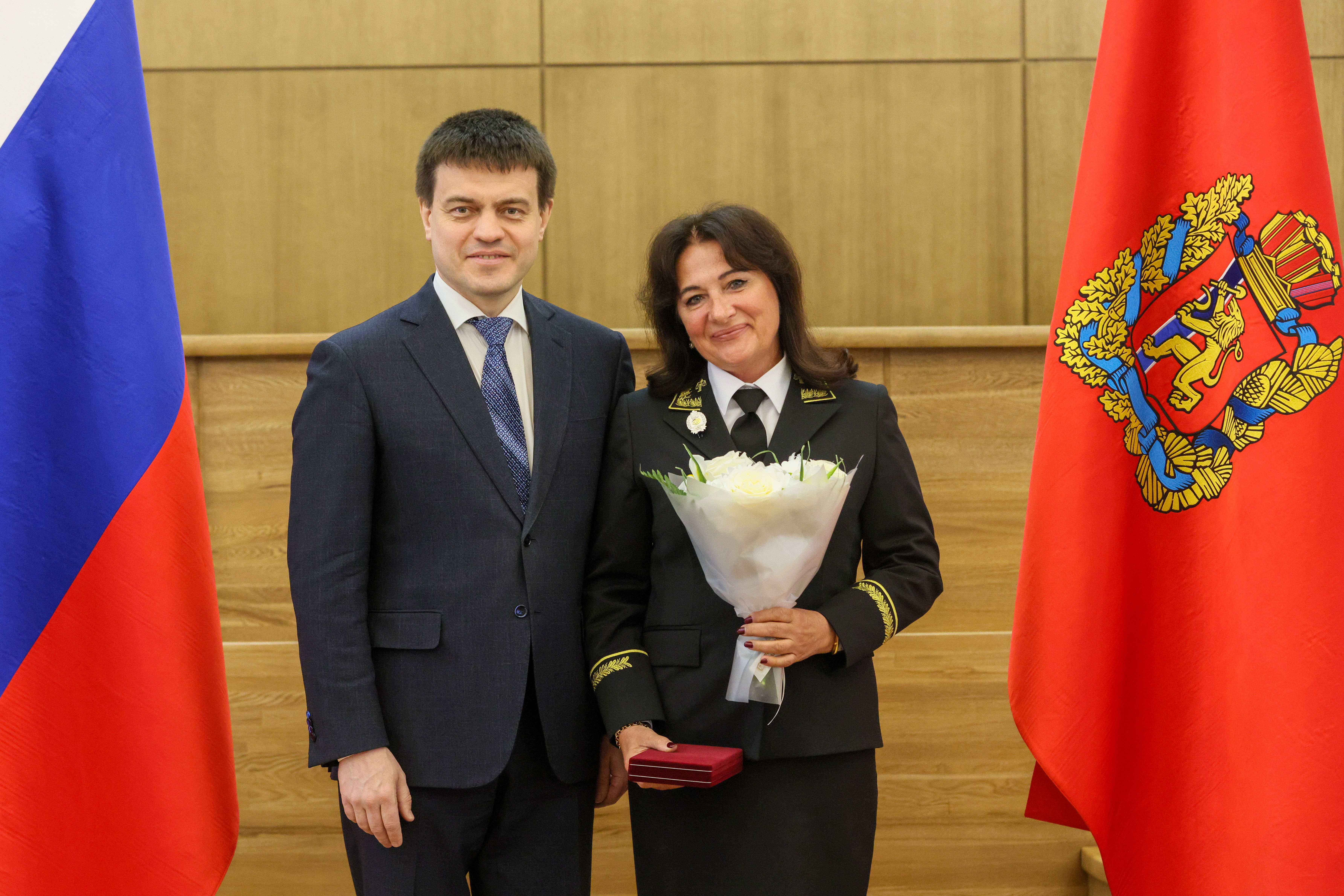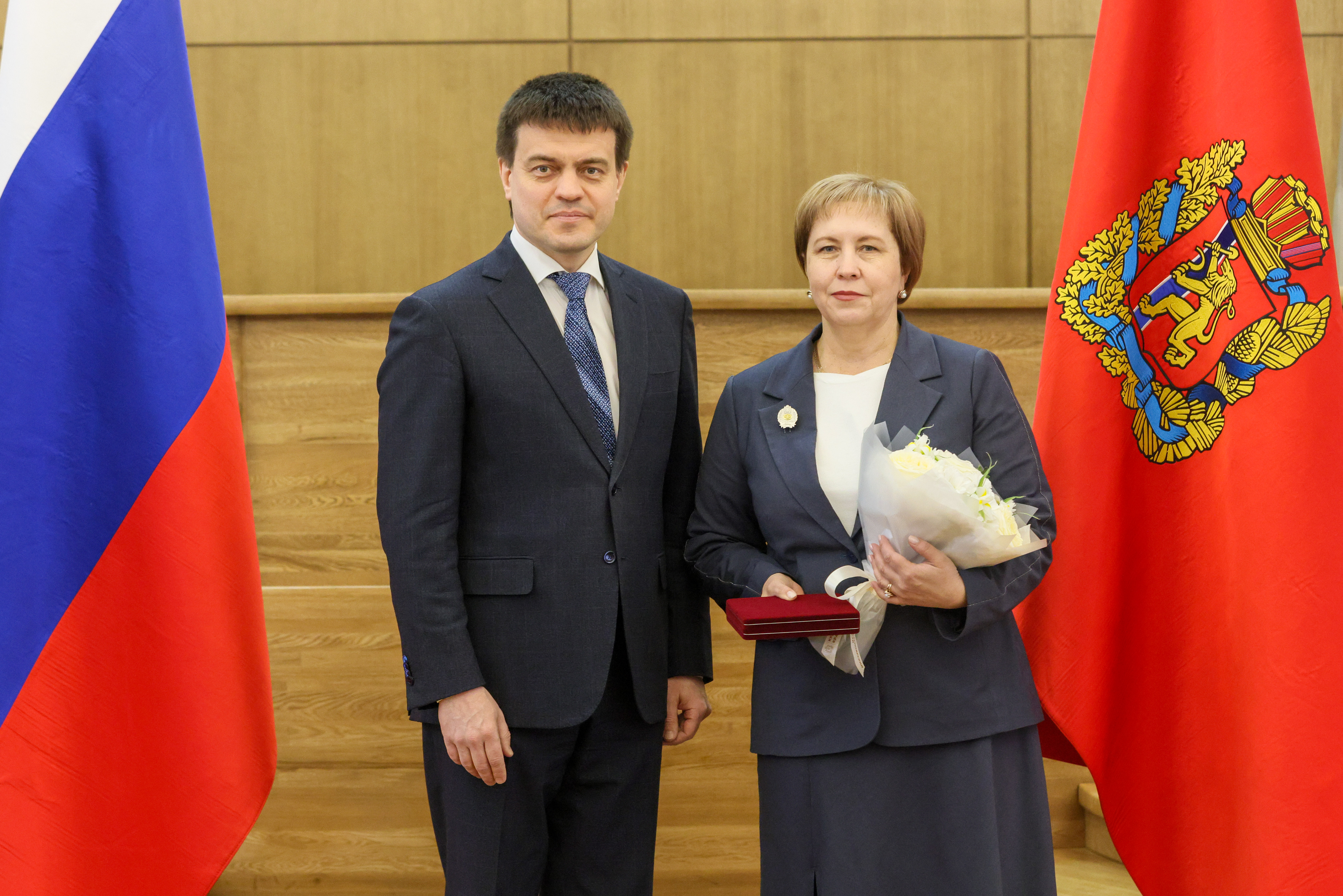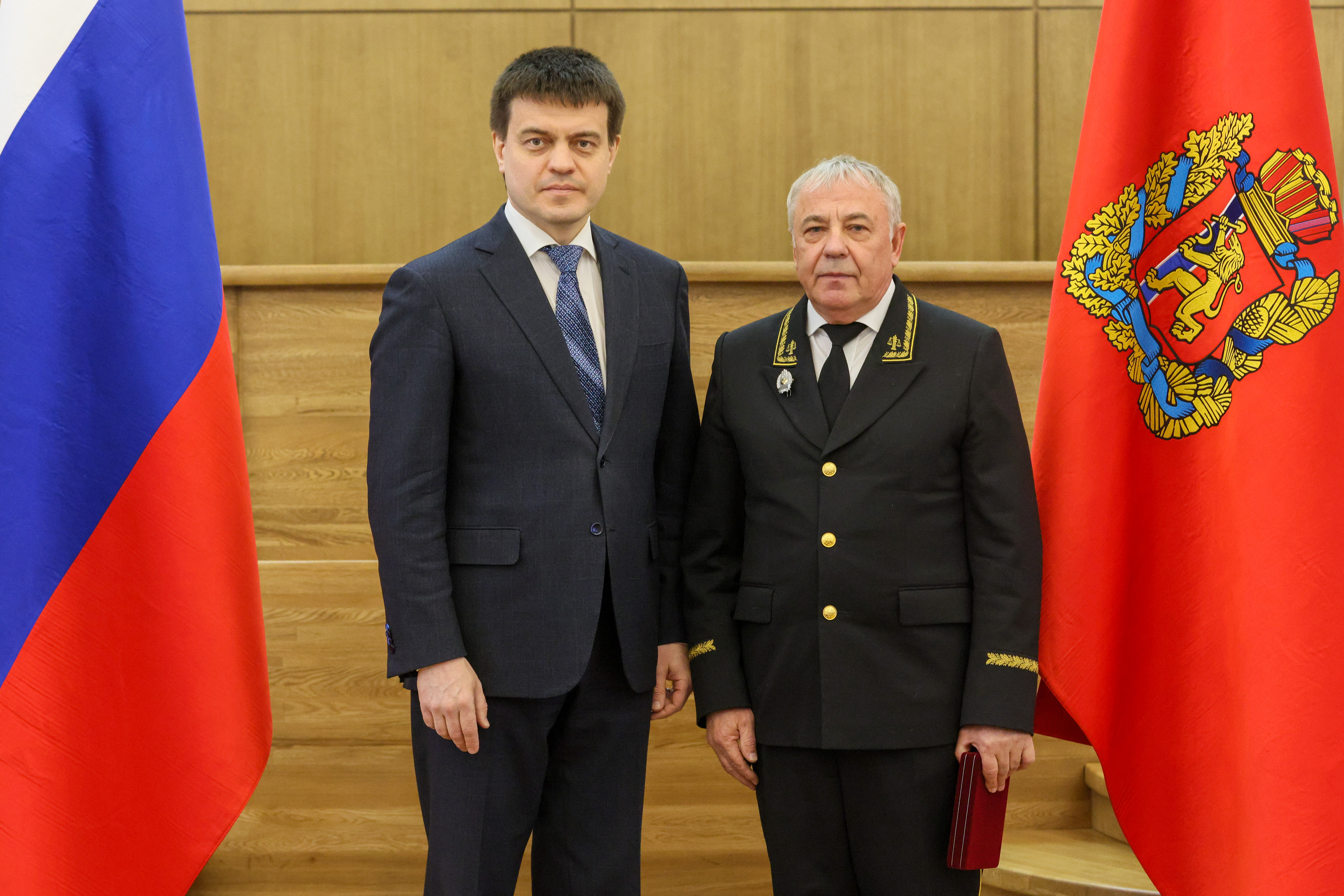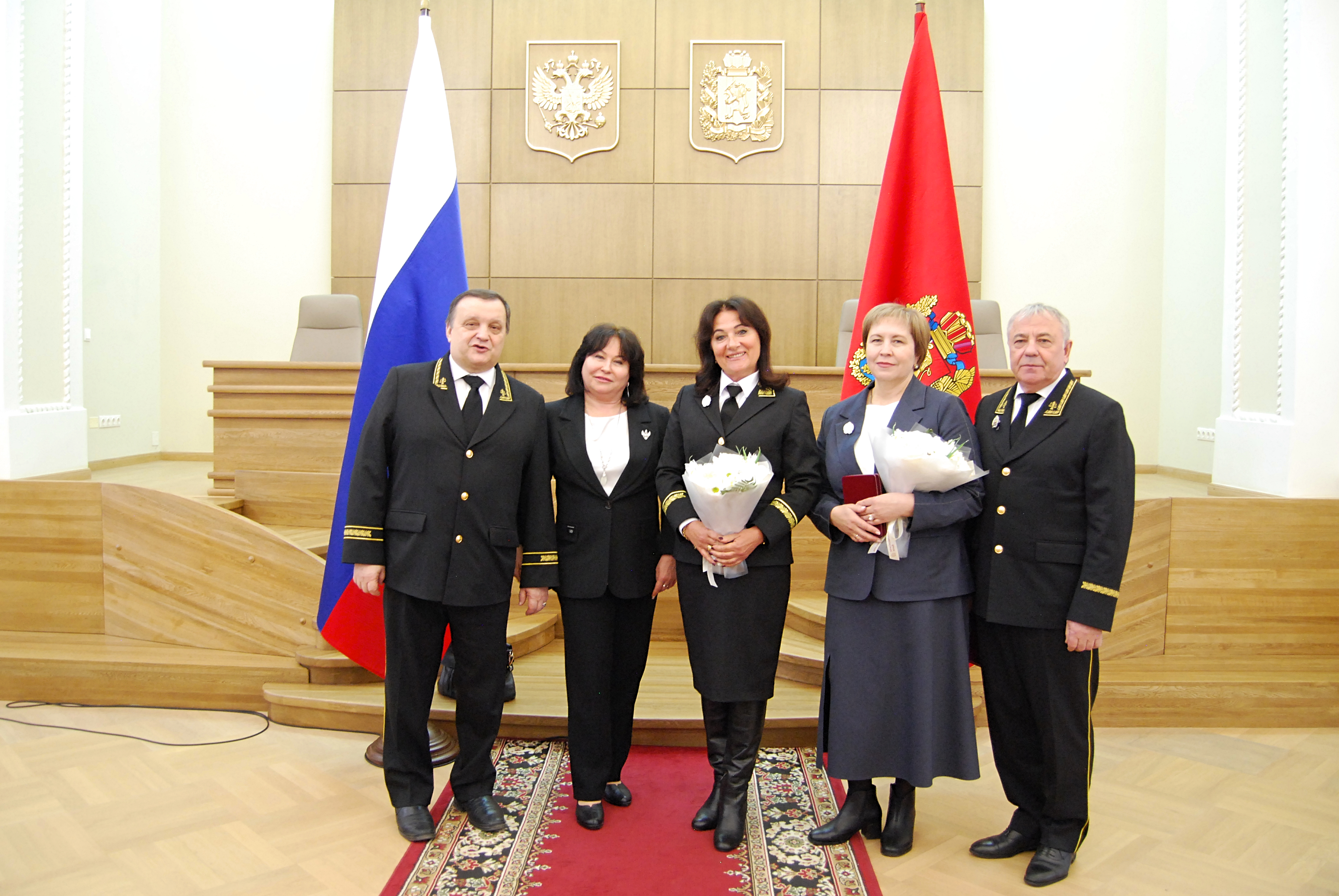 18 марта 2025 года в Администрации Губернатора Красноярского края состоялось торжественное вручение государственных и краевых наград, в рамках которого Губернатор Красноярского края М.М. Котюков вручил нагрудные знаки и удостоверения в связи с присвоением почетного звания «Заслуженный юрист Красноярского края» за заслуги в укреплении законности и правопорядка председателю Совета судей Красноярского края, председателю судебного состава Красноярского краевого суда В.Б. Федоренко, заместителю председателя Красноярского краевого суда Е.Б. Гареевой, и.о. председателя Саянского районного суда Красноярского края Л.М. Морозовой. Представление к присвоению почетного звания нашим коллегам по судейскому корпусу инициировано Красноярским региональным отделением ООО «Российское объединение судей». На церемонии награждения присутствовали председатель Красноярского краевого суда Н.В. Фуга и председатель Красноярского регионального отделения ООО «Российское объединение судей» С.В. Ахметова.